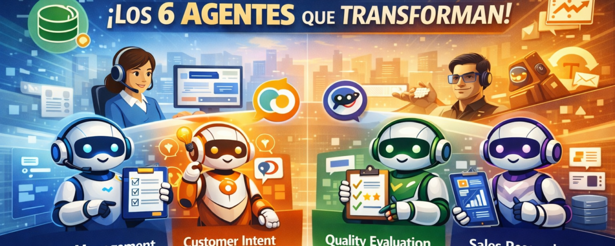 Los seis agentes comparten el mismo patrón: reducir el trabajo mecánico del agente humano para que pueda centrarse en lo que importa. Case Management para el burocrático de rellenar formularios. Customer Intent para no empezar de cero cada contacto. Quality Evaluation para que el supervisor no tenga que revisarlo todo. Knowledge Management para que el conocimiento no muera con el caso. Sales Development para la cualificación repetitiva. Sales Research para llegar con contexto a la conversación.